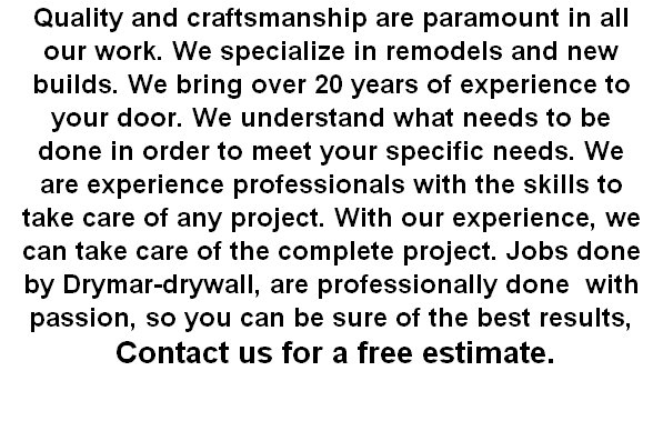 Safety, is our Top priority. We are Drymar Drywall installers, since 2005 “Drymar-Drywall” offers the  Best Interior finishing solutions, and top quality. 100% guaranteed! Satisfaction is our guarantee.